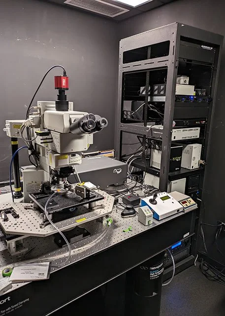Laser System: Coherent Discovery NX providing two independently tunable beams (typically ~680–1300 nm), enabling simultaneous or sequential dual-wavelength excitation